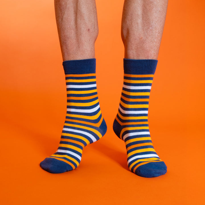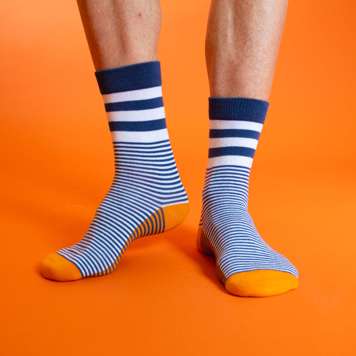 Mainio puuvillasukat yhdistävät mukavuuden ja selkeän tyylin. Ne istuvat hyvin, tuntuvat pehmeiltä jalassa ja pysyvät ryhdikkäinä päivän mittaan. Joustava ja hengittävä puuvillasekoite tekee käytöstä miellyttävää ja ajattomat sävyt sopivat monenlaiseen tyyliin. Kolme erilaista raitakuosia tuovat harkittua vaihtelua pukeutumiseen sopien niin työ- kuin vapaa-ajan asuihin. Mainiot sukat joka päivä.